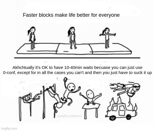 Agreed. Many such opinions in the community. People who don’t have the pain point feel status quo is “good enough”, but people with the pain point of blocktime REALLY feel it hard. And 1 minute blocks doesn’t make the situation for 10 minute block preferrers any worse.