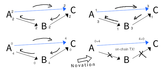 If you can’t point to this described historically, this is an important discovery. It isn’t “LN but more hub-and-spoke”. LN is by definition Ryan Fugger’s Ripple + “collateral”. Ryan never included novation at all. He did consider Evgeni Pandurski’s idea of loop clearing but that quickly gets roughly as complex as multihop. Both Ryan, Lightning Network, Evgeni, are jumping to the more complex solution. But there is a simpler one they do not even consider. And it is what built the global banking infrastructure. It’s not a “hub and spoke”, it is an inverted central network, not a central network. It is not at all correct to say “like hub and spoke”, it misses the point. The inverted network does not have a hub but it operates, accounting-wise, as if it was a hub and spoke. Without payment channels this meant you needed a monopoly on trust within the global banking system, but with payment channels you can do it trustlessly.