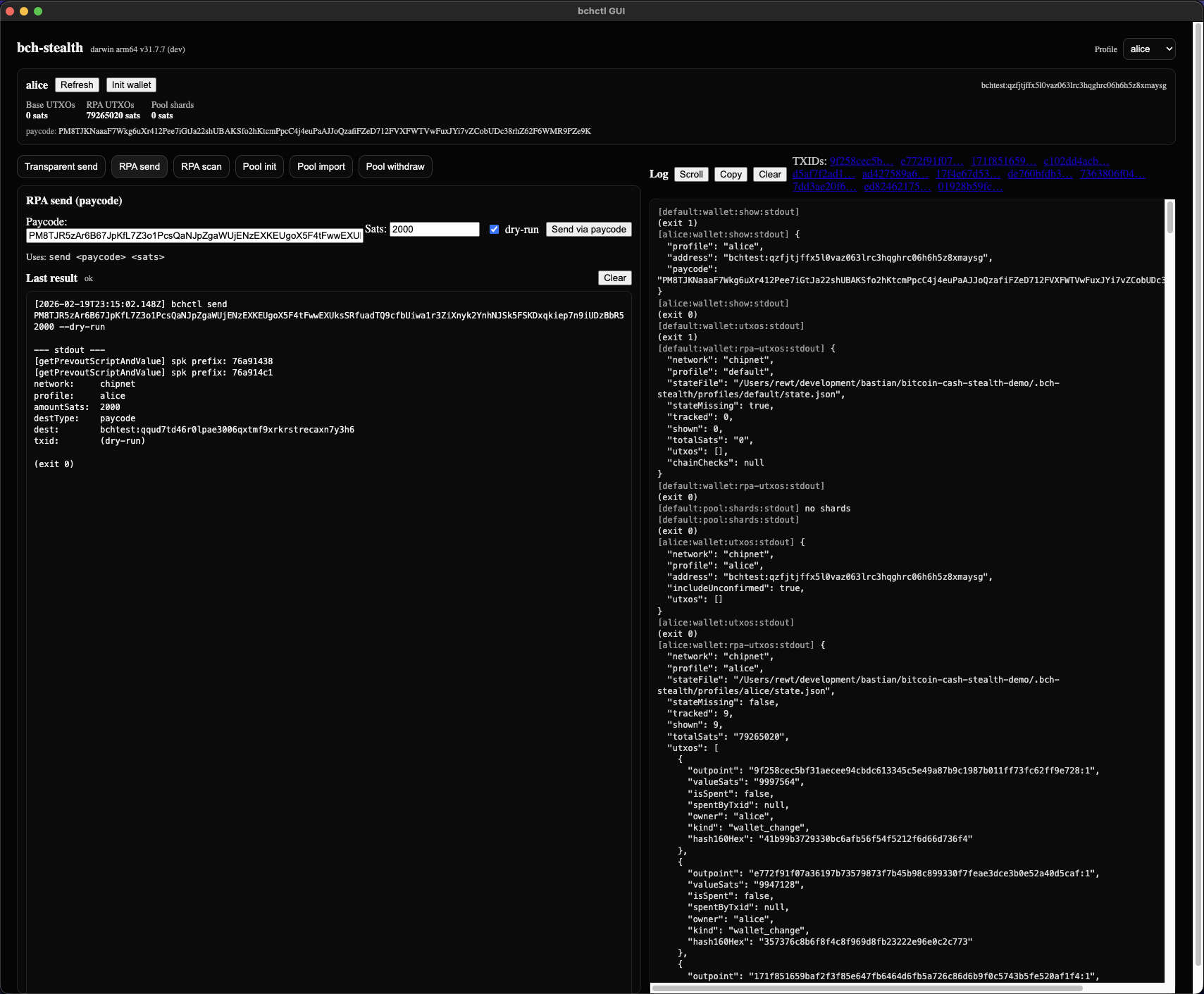 - Bob spends from the shard to pay to Alice’s paycode-derived one-time address.